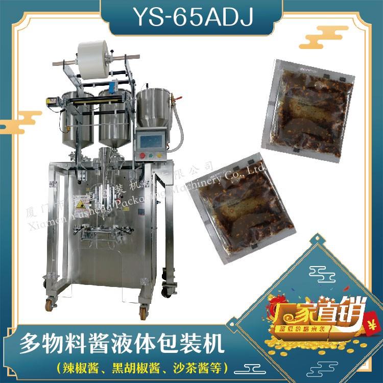 YS-65ADJ 三邊封多物料醬體包裝機特 點 1、適用于食品、醫(yī)藥、化工、化妝品行業(yè)中液體、醬料等物品的計量包裝。2、可自動完成制袋、計量、下料、封合、分切、計數(shù)、且可根據(jù)客戶要求配置打印批號等功能。3、觸摸屏操作,PLC 控制,驅(qū)動步進電機控制袋長,性能穩(wěn)定、調(diào)整方便、檢測準確。智能式溫控儀,PID調(diào)節(jié),保證將溫…