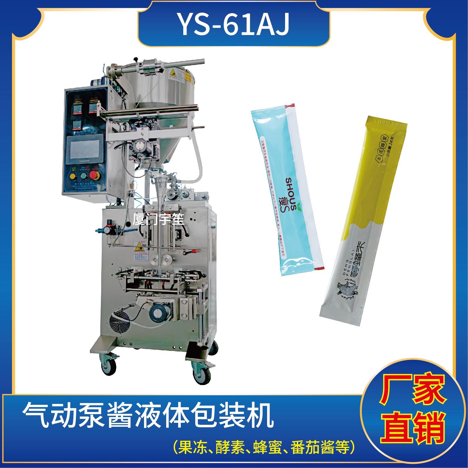 YS-61AJ 三邊封醬液體包裝機特點1、適用于食品、醫(yī)藥、化工、化妝品行業(yè)中液體、醬料物品的計量包裝。2、可自動完成制袋、計量、下料、封合、分切、計數(shù)、且可根據(jù)客戶要求配置打印批號等功能。3、觸摸屏操作,PLC 控制,驅(qū)動步進電機控制袋長,性能穩(wěn)定、調(diào)整方便、檢測準確。智能式溫控儀,PID調(diào)節(jié),保證將溫度的誤差范…