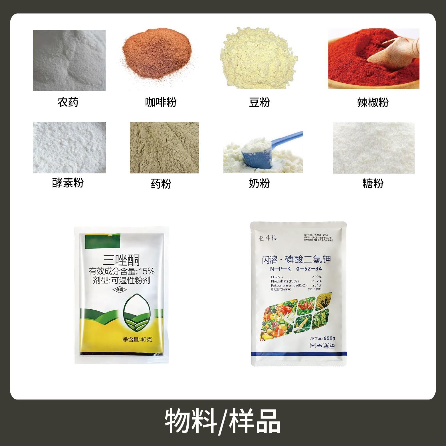 1、適用于食品、醫(yī)藥、化工、化妝品行業(yè)中粉劑等大克重物品的計(jì)量包裝,如:面粉、玉米粉、農(nóng)藥粉等。