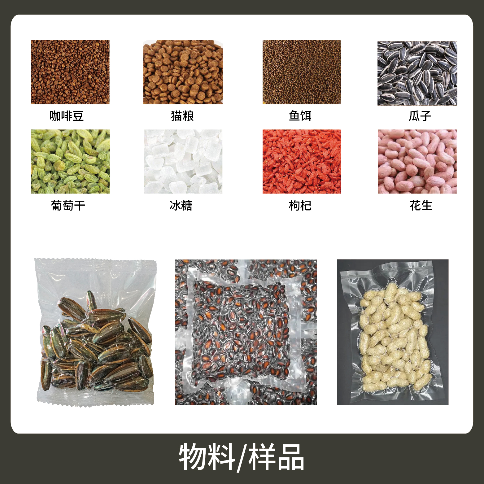 1、適用于食品行業(yè)中干果、炒貨、干菜等顆粒物品的真空計量包裝,防止食品的霉腐變質,保持食品的色香味,延長保質期。