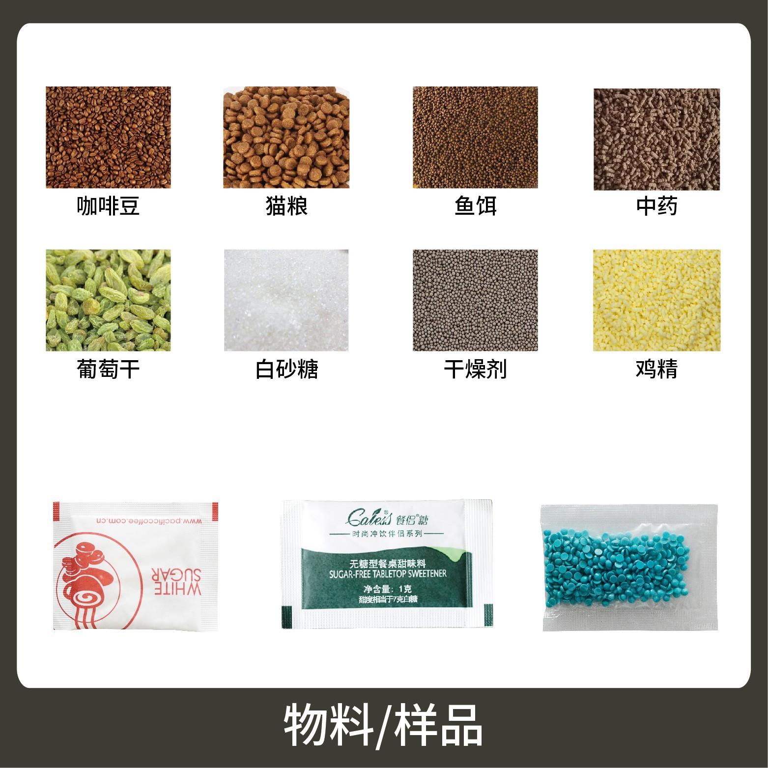 1適用于各類調(diào)味料,沖劑、餌料、香珠等小顆粒狀物品的計(jì)量包裝。