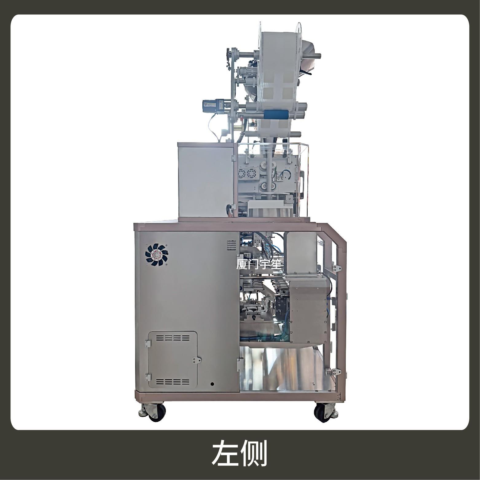 The machine is suitable for the dual bag packing of powder-like materials, such as tea powder and coffee powder.