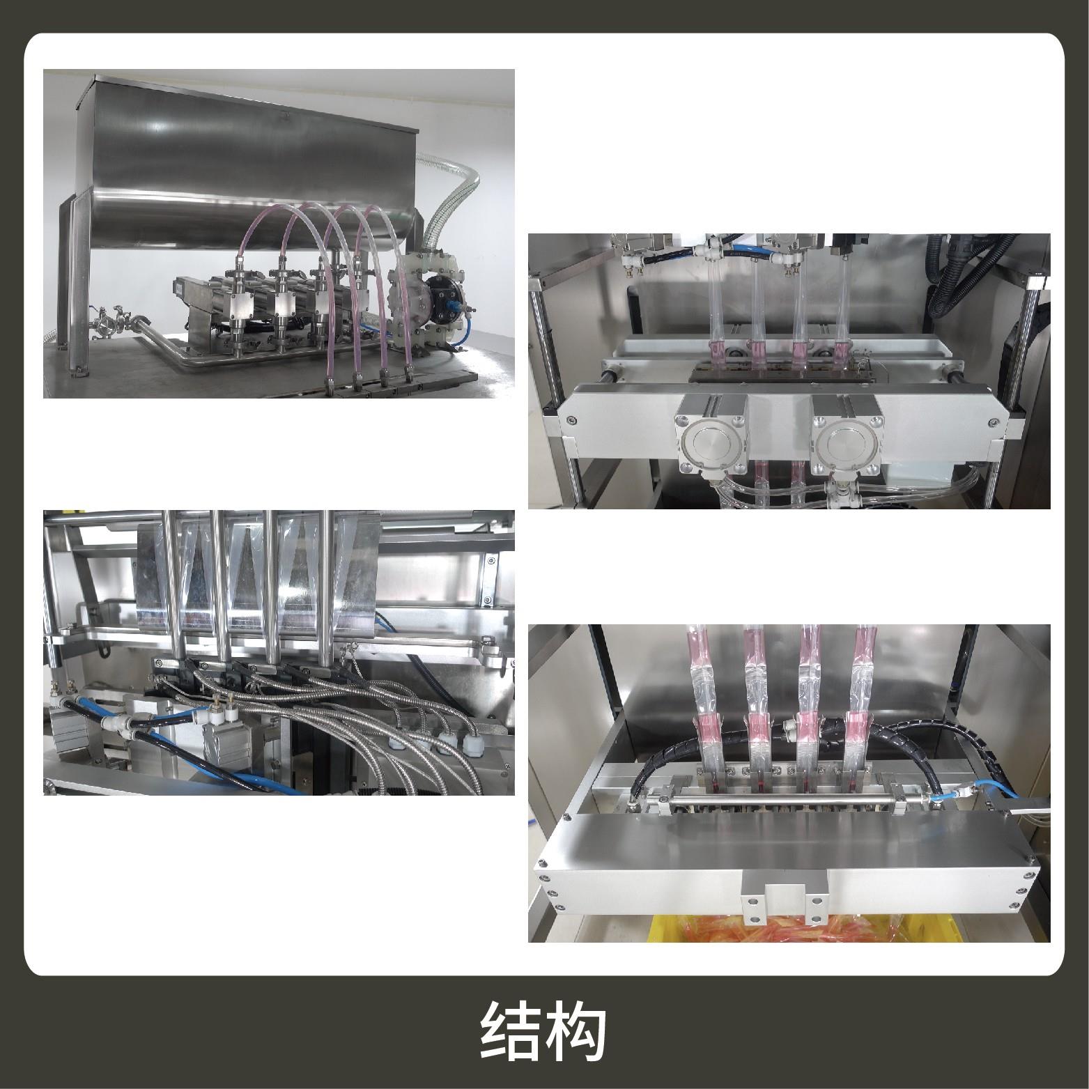 特 點(diǎn)1、適用于各行業(yè)中酵素、果汁、漱口水、洗護(hù)用品、染發(fā)劑、化妝品小樣等醬料、液體物品的多列異形袋計(jì)量包裝。